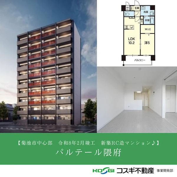 菊池市中心部にRCの新築マンションが誕生します♪スーパーや飲食店街が徒歩圏内!生活利便性に優れた好立地です!1LDK×38戸、2LDK×1戸の間取りで入居者に喜ばれる設備も充実しております!